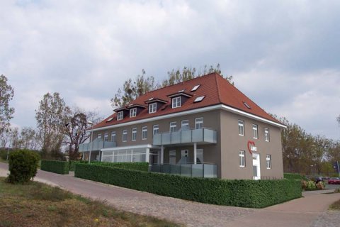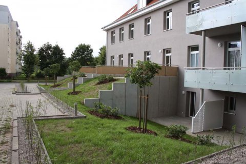 Im Gegensatz zum Pflegeheim lebt in der ambulant betreuten Wohngemeinschaft eine kleine Gruppe von Menschen mit unterschiedlichem Betreuungsbedarf zusammen, und trotzdem hat jeder Mieter seine eigene behindertengerecht gestaltete Wohnung, zum Teil mit Balkon oder Terrasse.